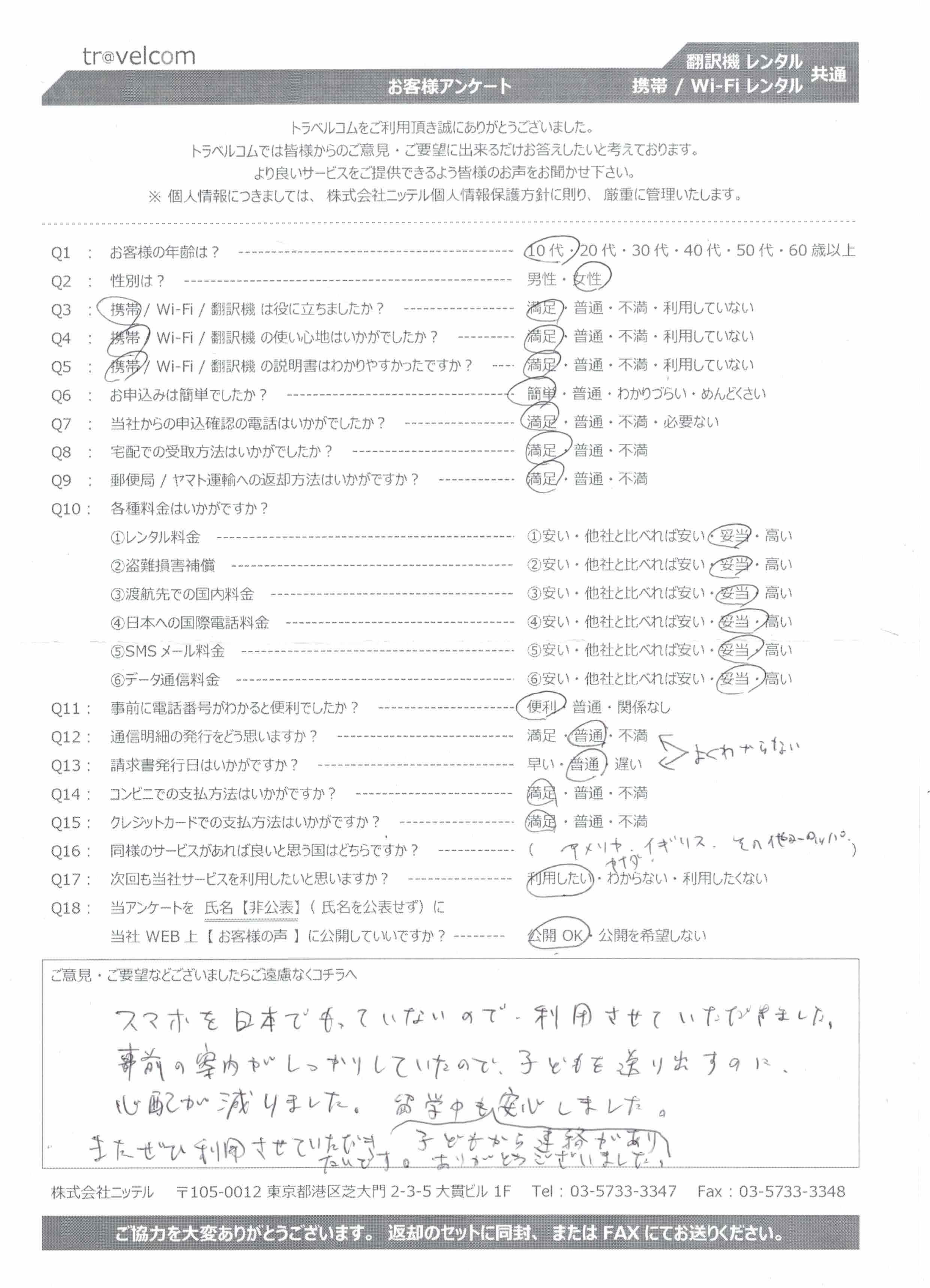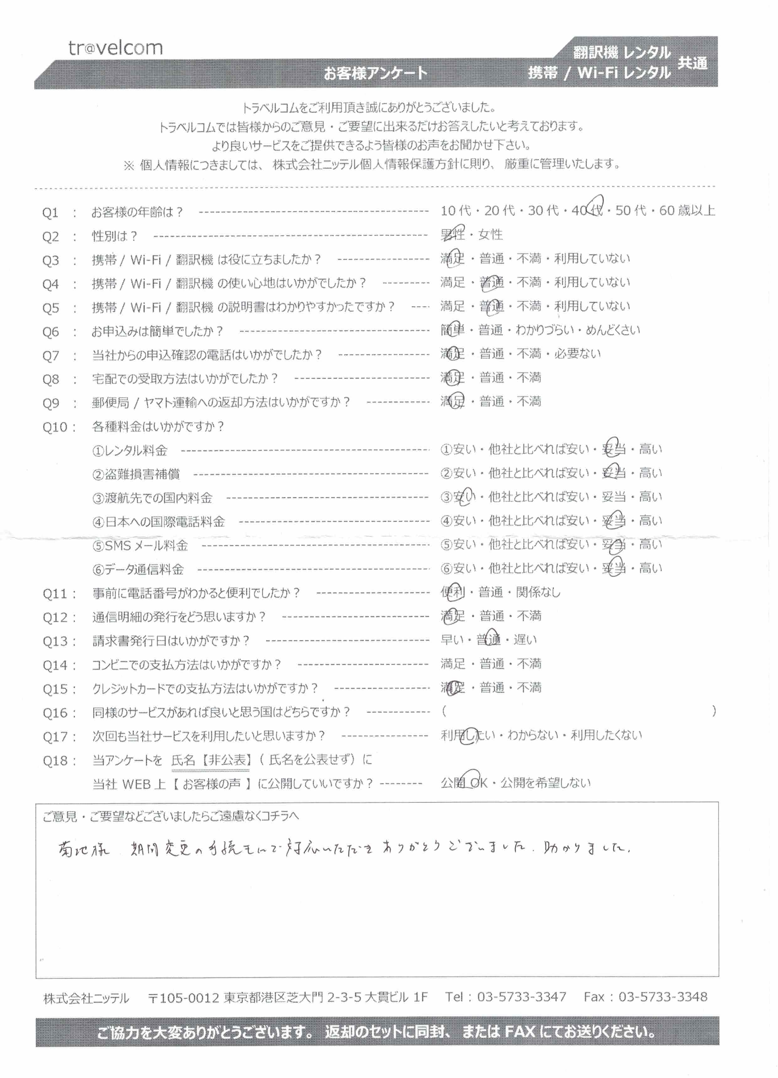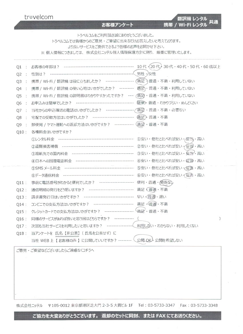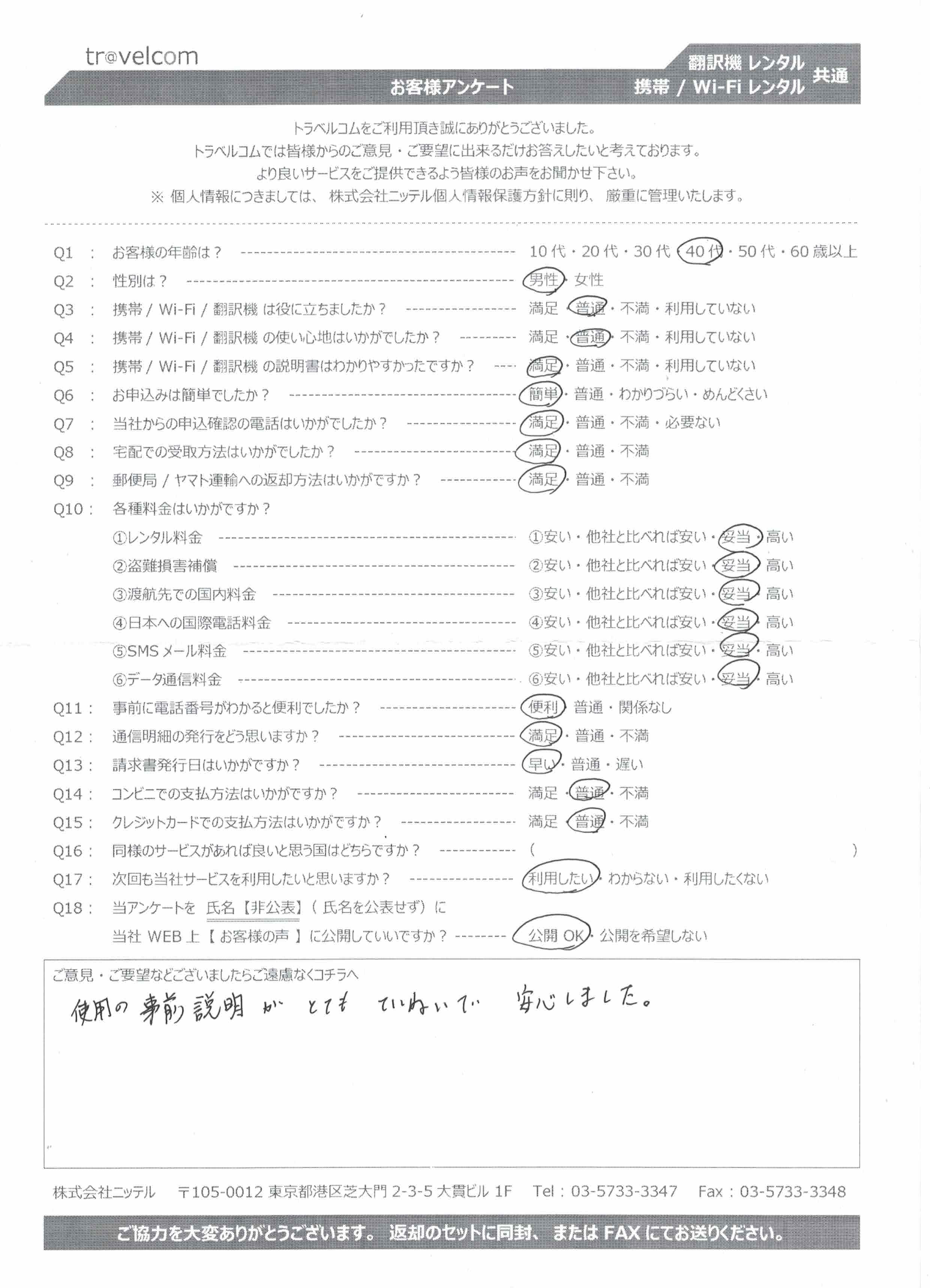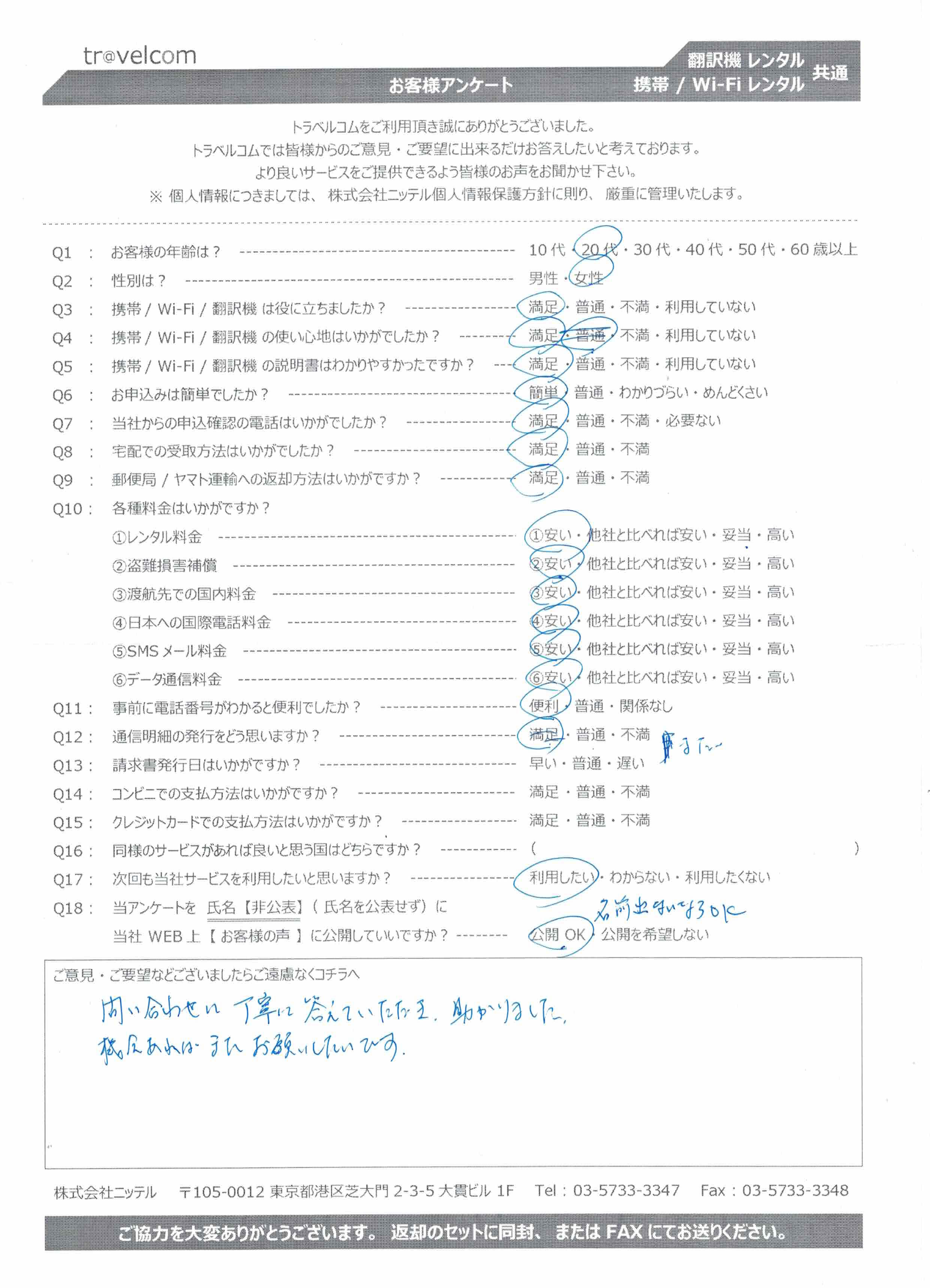 お客様からいただいたアンケートの中から【公開 OK 】と記載のアンケートを掲載します。(日付はアンケート受領日)