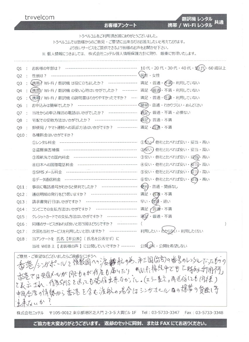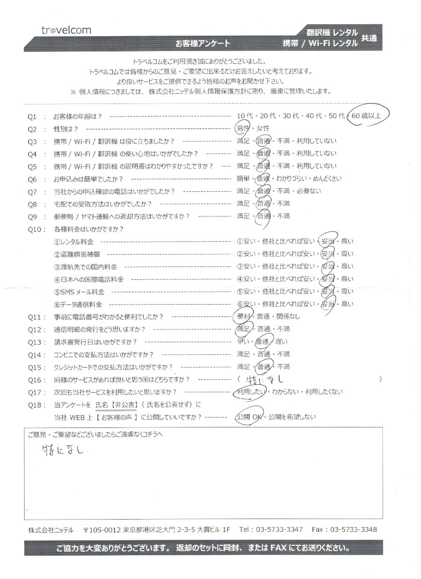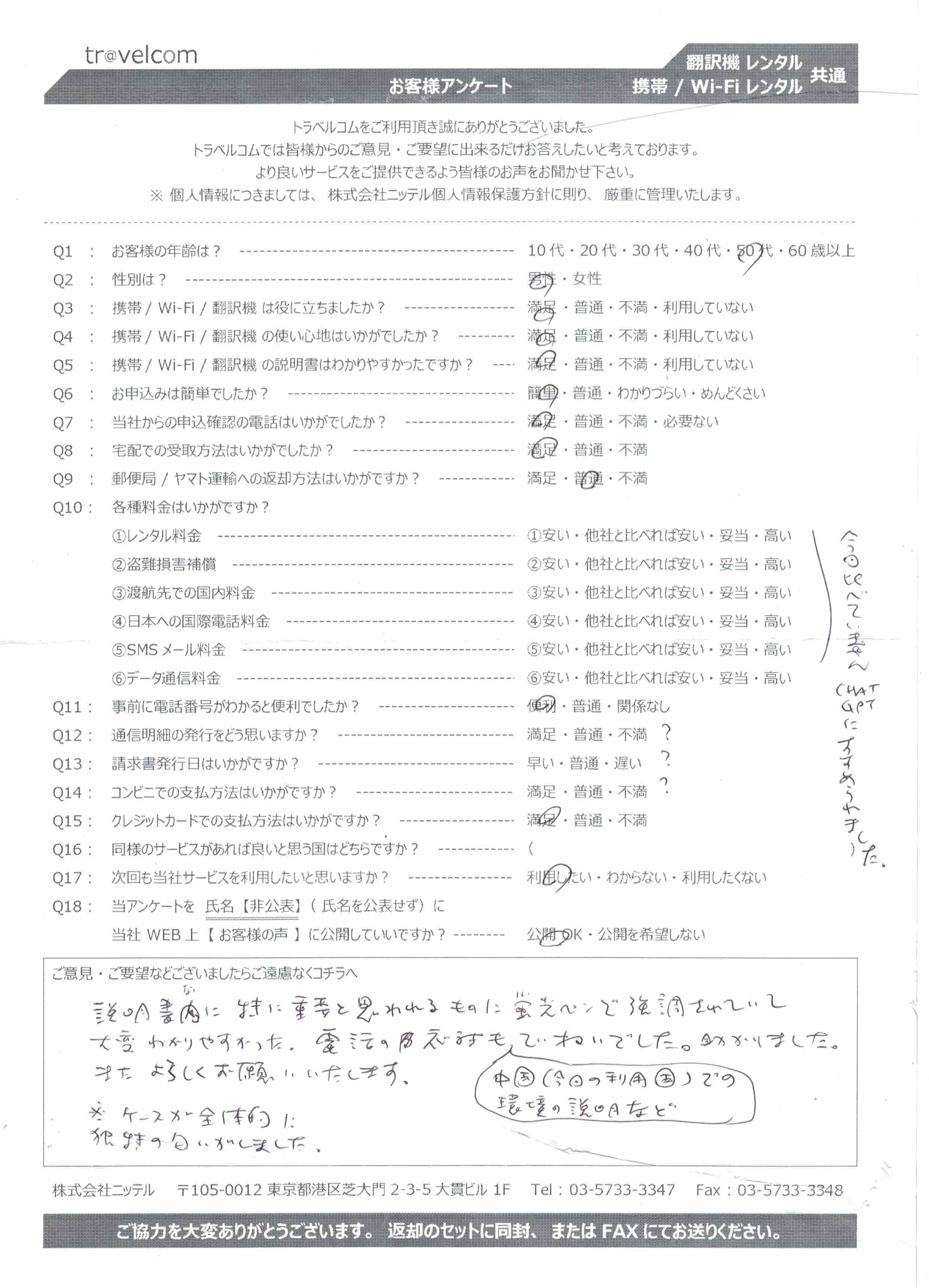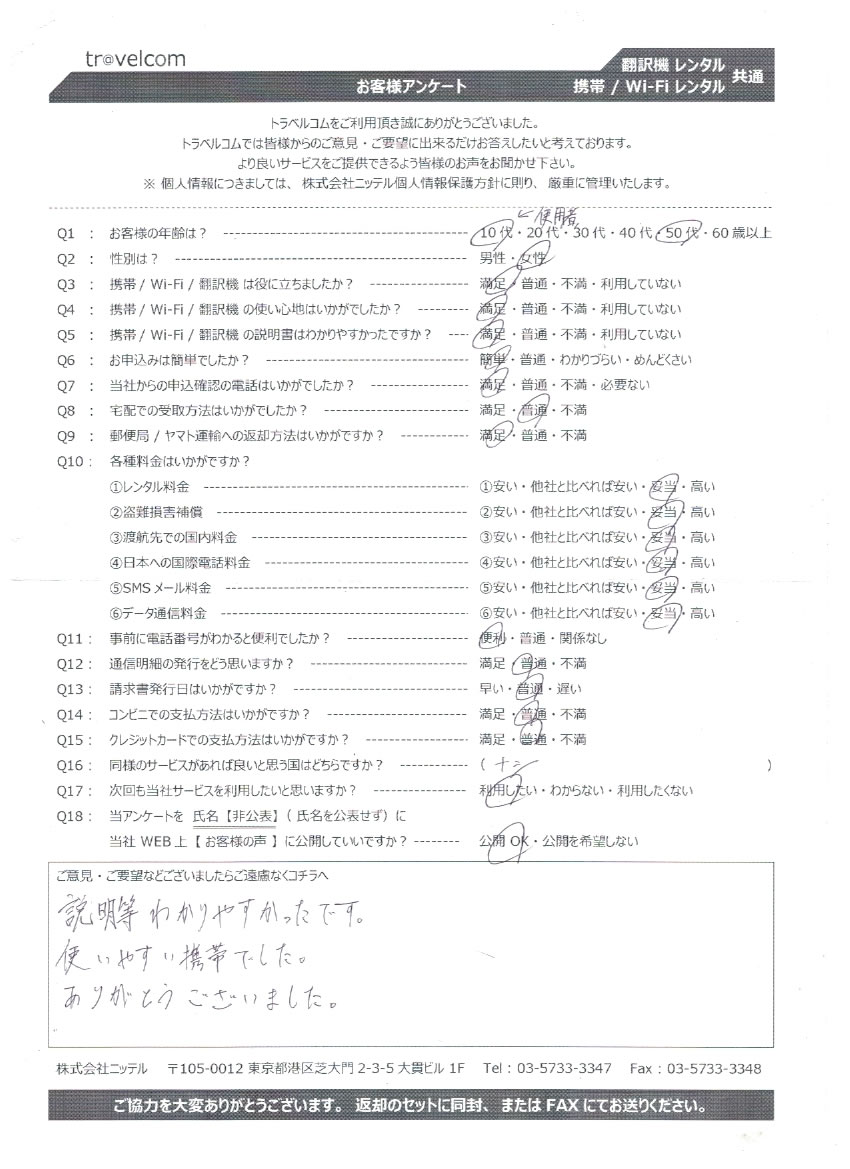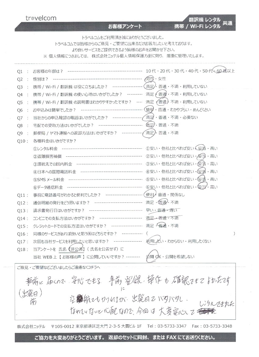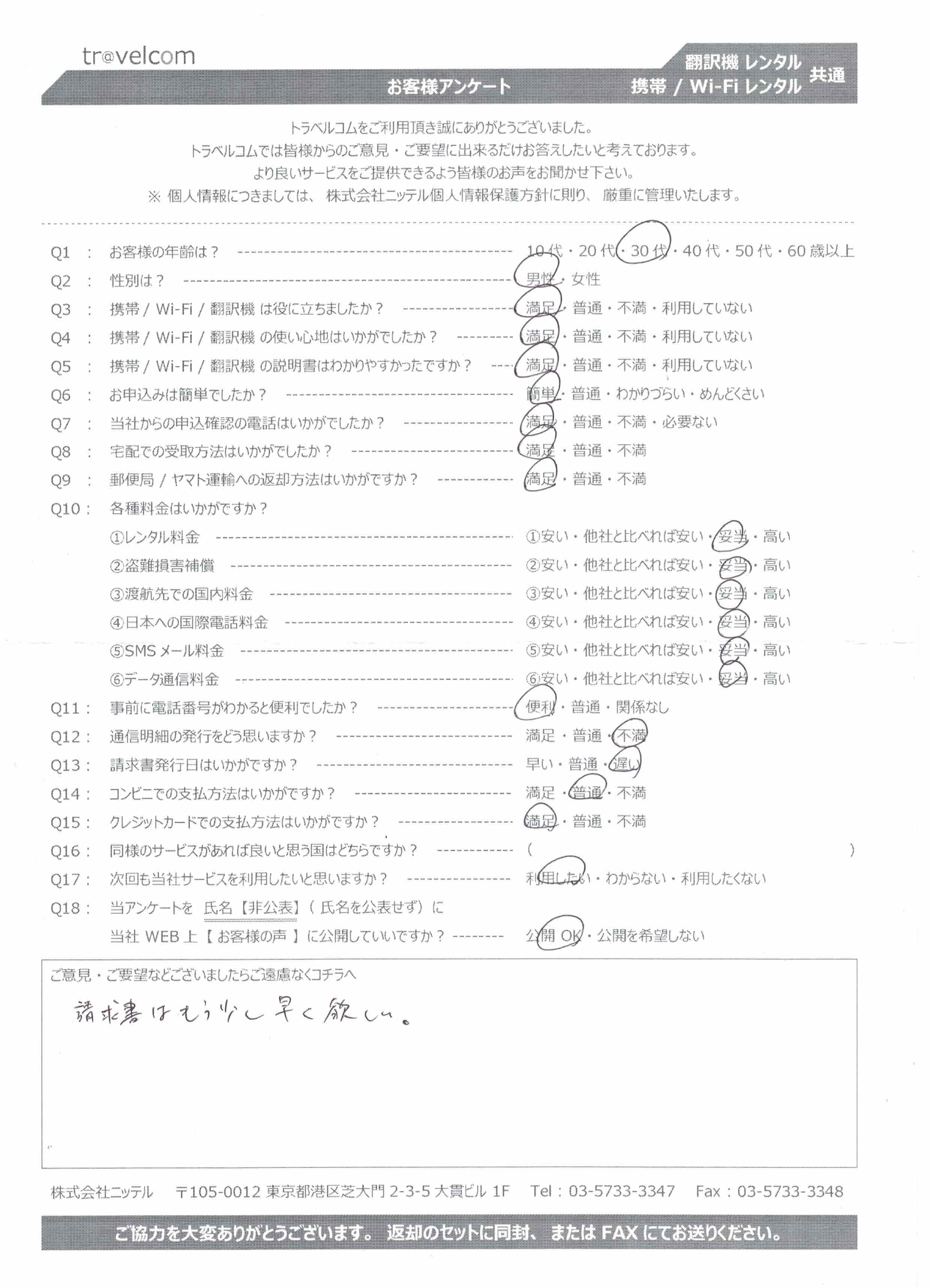 お客様からいただいたアンケートの中から【公開 OK 】と記載のアンケートを掲載します。(日付はアンケート受領日)