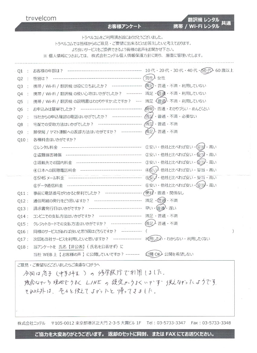 原則【公開 OK 】のアンケートは全て掲載しますが、公序良俗に反する、個人の特定につながるなど、適当でないと判断した場合は掲載しません。
