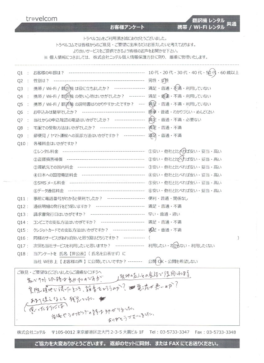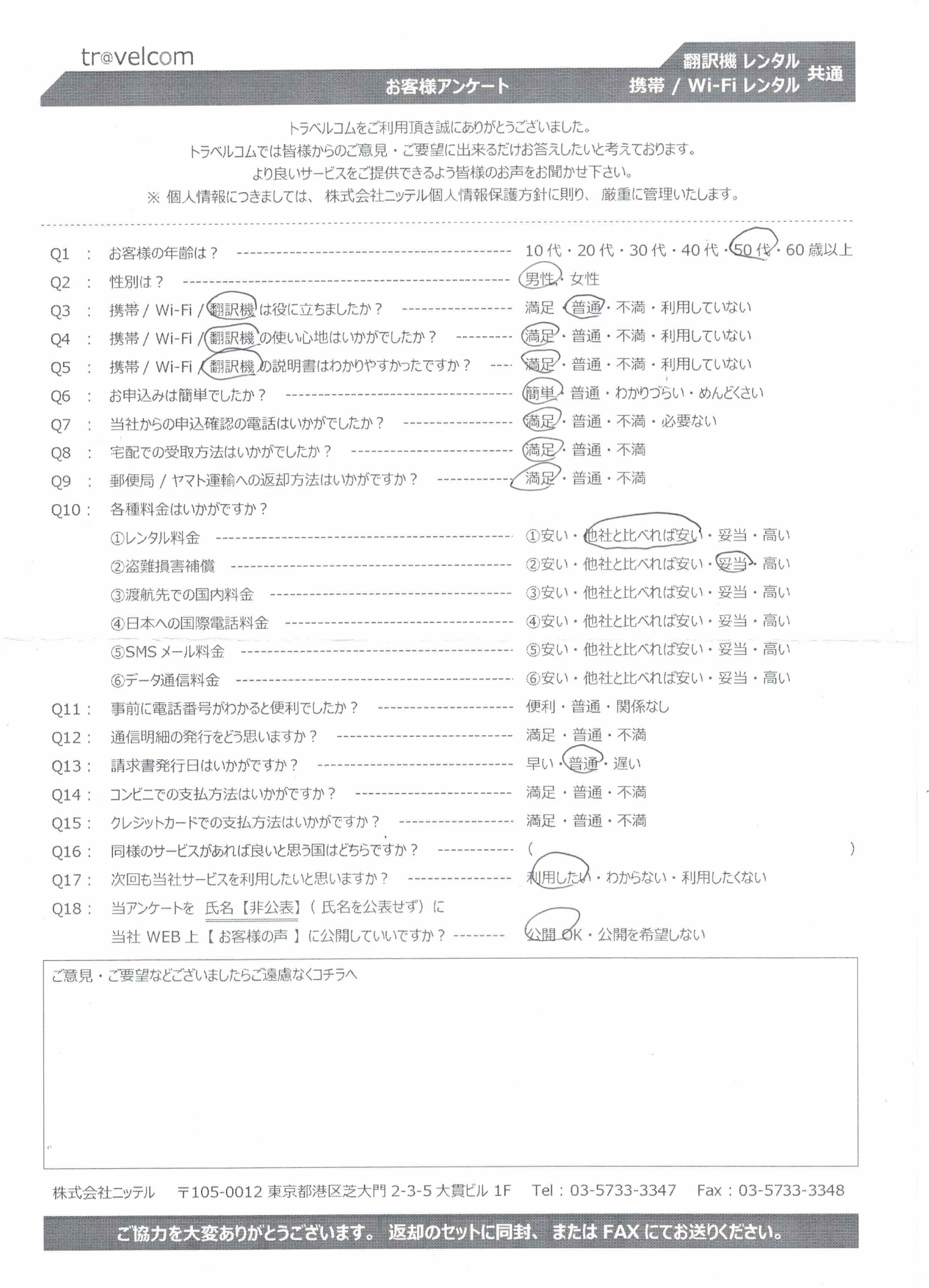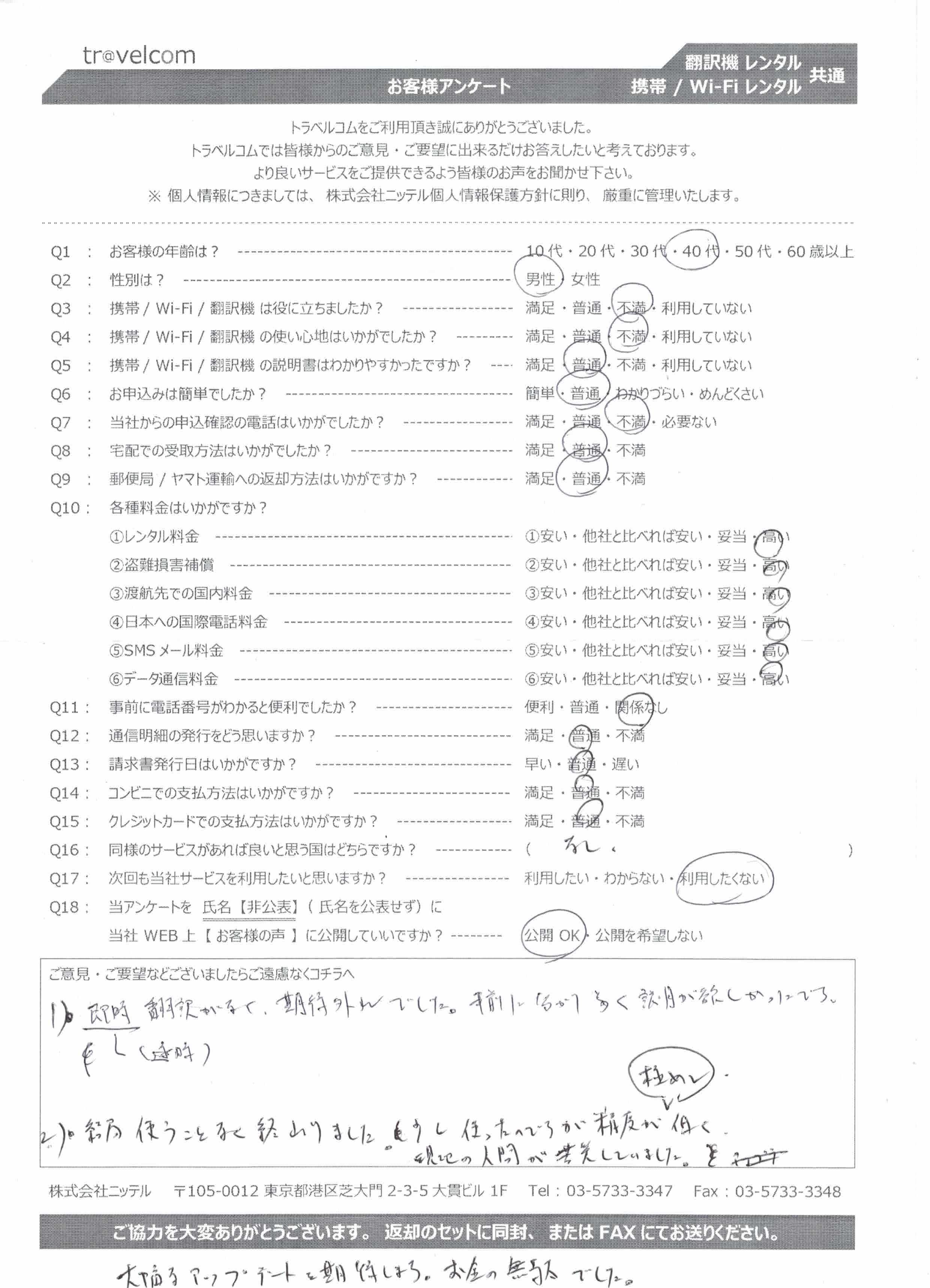 お客様からいただいたアンケートの中から【公開 OK 】と記載のアンケートを掲載します。(日付はアンケート受領日)