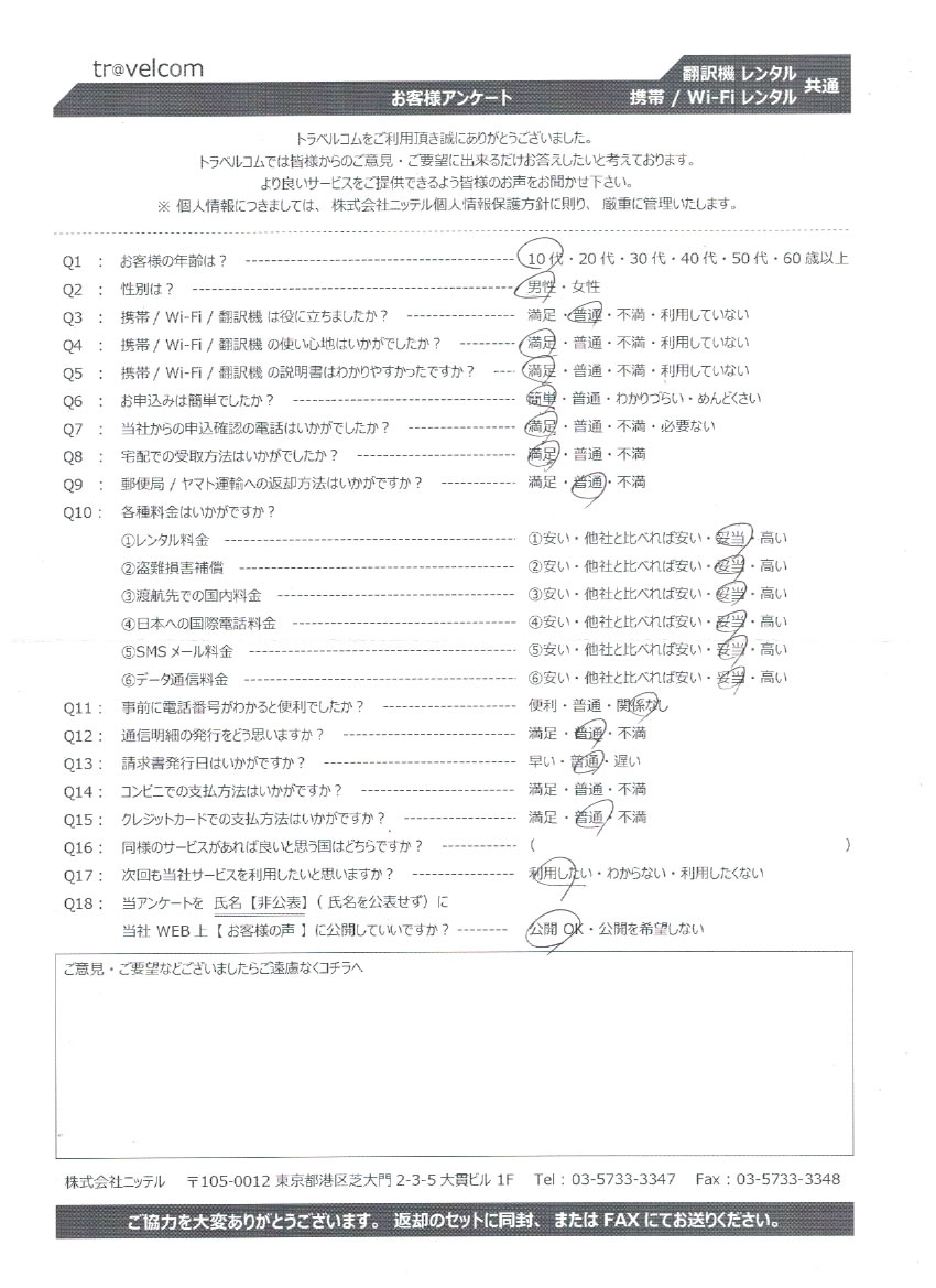 原則【公開 OK 】のアンケートは全て掲載しますが、公序良俗に反する、個人の特定につながるなど、適当でないと判断した場合は掲載しません。