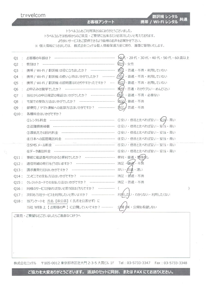 お客様からいただいたアンケートの中から【公開 OK 】と記載のアンケートを掲載します。(日付はアンケート受領日)